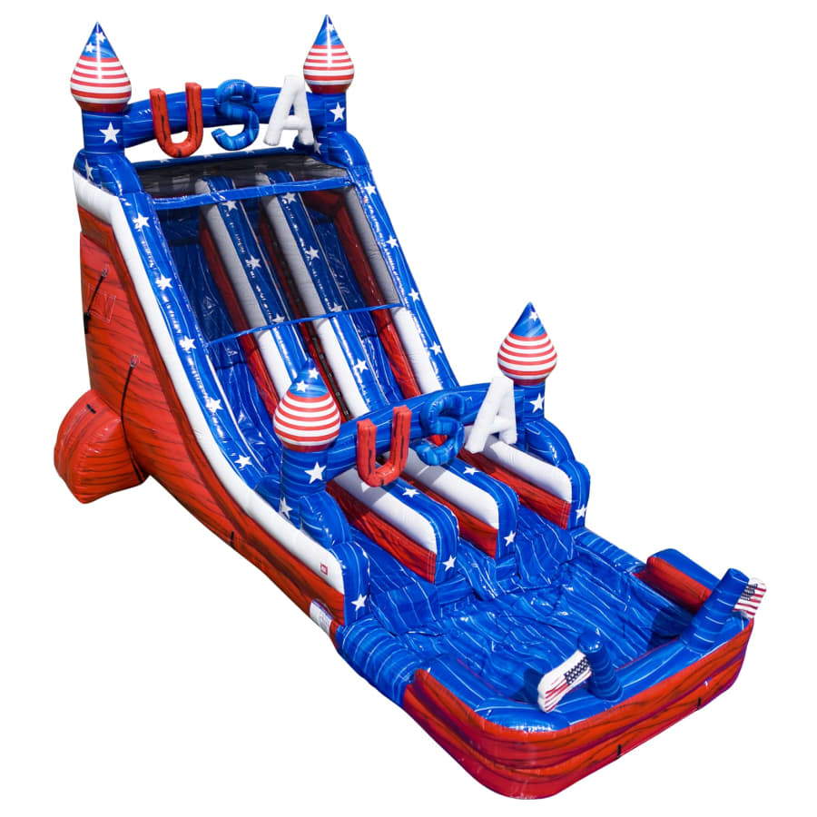 Whether you're celebrating Independence Day, throwing a summer bash, or organizing a school event, the 18ft USA Dual Slide in Lansing, Michigan is your ticket to unforgettable fun. Its eye-catching colors and thrilling design will make it the focal point of any gathering, ensuring endless thrills and laughter.