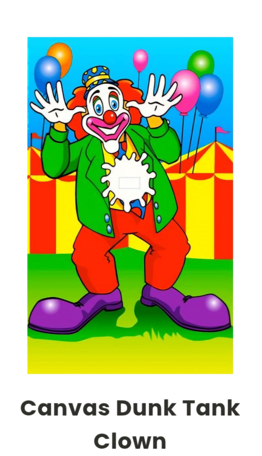 The dunk tank comes with a yellow canvas, and you have the option to choose a baseball or clown-themed canvas for an additional $20.