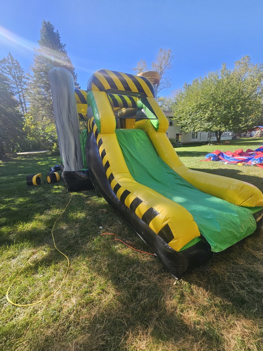 Designed to look like a hazardous waste zone, the Toxic Hazard Bounce N Slide boasts bright yellow and green colors, complete with caution signs and faux spillages that create an immersive and exciting atmosphere. The eye-catching theme ensures that your event stands out and keeps guests entertained from start to finish.