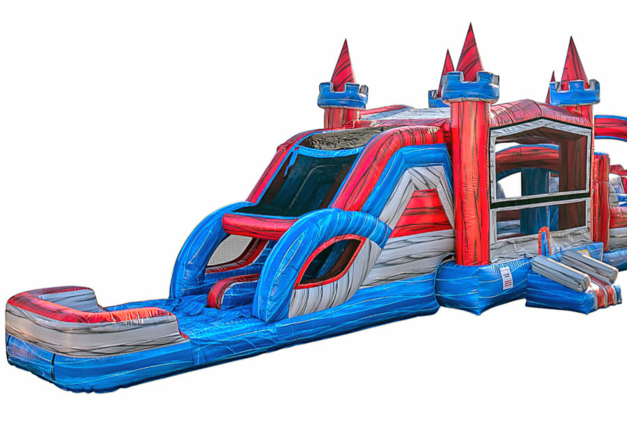 If you’d like to rent the combo bounce house by itself, please call or email us. However, if you’d like to rent it with the obstacle course, you can book both inflatables under the Obstacle Courses category on our website. or click this Link 63 ft. Castle Tower Obstacle Course