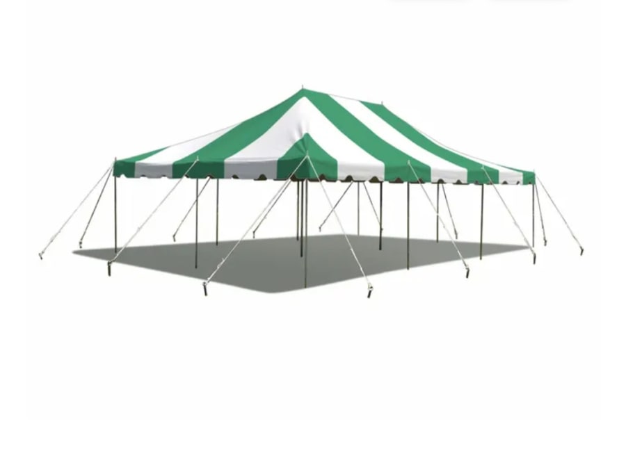 Embark on a whimsical journey with our 20x30 Green and White Tent – a vibrant spectacle that turns ordinary events into extraordinary celebrations! This playful combination of green and white adds a burst of color to the atmosphere, setting the stage for unforgettable memories.