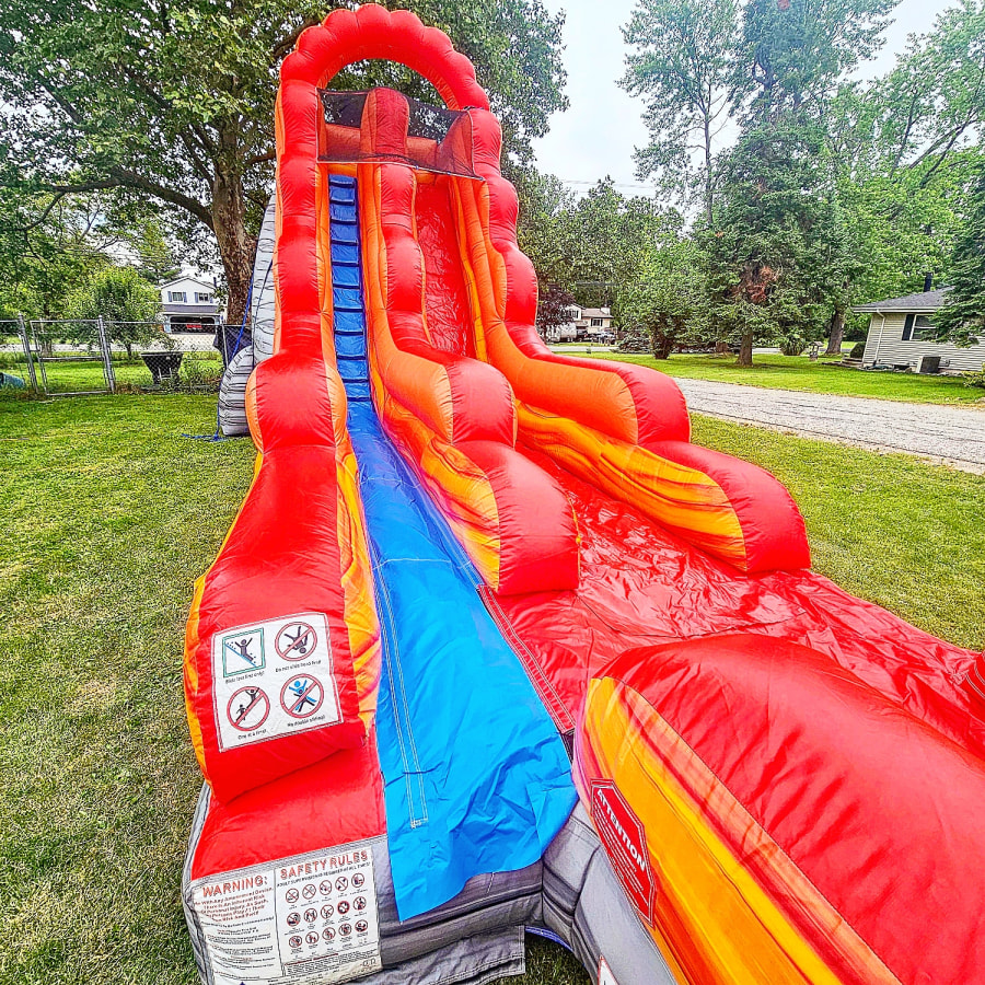 With Bounce House Kingz's 18' Fire Red Marble Inflatable Slide wet or Dry in Lansing, MI, your party becomes an unforgettable memory. Whether you're hosting a birthday celebration, community event, or just a fun day with friends, this slide guarantees laughter and joy for everyone involved. Let it be the highlight of your next gathering and watch as excitement ignites among your guests!
